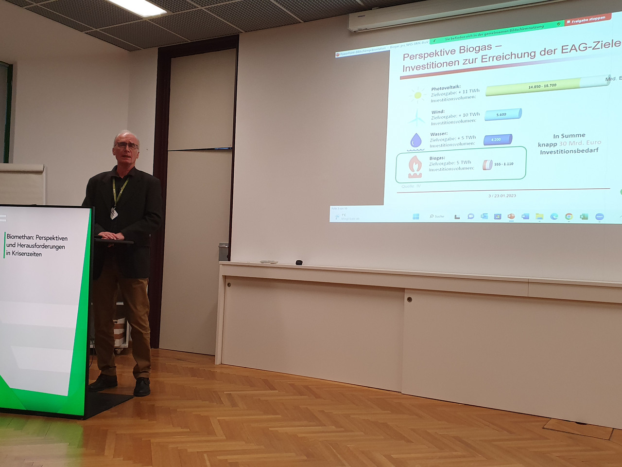 Am 23.01.2023 veranstalteten das Institut für Industrielle Ökologie, der Kompost & Biogas Verband Österreich und BioBASE einen Workshop zum Thema „Biomethan: Perspektiven und Herausforderungen in Krisenzeiten“. Die Veranstaltung wurde vom Bundesministerium für Klimaschutz, Umwelt, Energie, Mobilität, Innovation und Technologie unterstützt. Im Beisein von Sektionschef Dr. Jürgen Scheider konnten die TeilnehmerInnen Einblicke in die aktuelle Situation, einen Überblick über die Rollen der Stakeholder am Biomethan-Markt, von Produzenten über Anlagen- und Netzbetreiber bis hin zu den Abnehmern, und einen Ausblick zu zukünftigen Entwicklungen erhalten. Darüber hinaus wurden in einer gemeinsamen Diskussion die Chancen und Herausforderungen von Biomethan als nachhaltigen Energieträger erörtert. Der Workshop wurde von den TeilnehmerInnen durchwegs positiv aufgefasst und leistete damit einen entscheidenden Beitrag zur Realisierung einer klimafreundlichen Energiewende, beispielsweise durch die Vernetzung von Stakeholdern oder als Hilfestellung für österreichische Unternehmen bei der Erstellung von internen Energiestrategien.